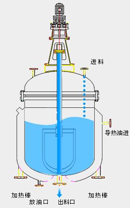 攪拌罐蓋上部配置有傳動裝置(電機或減速器),由傳動軸驅動攪拌罐內的攪拌器。